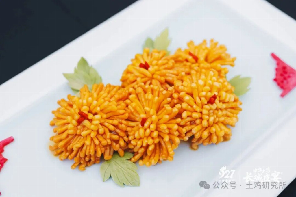 秋分——菊花鸡丝,选用温氏股份提供的“天露草鸡”制作。